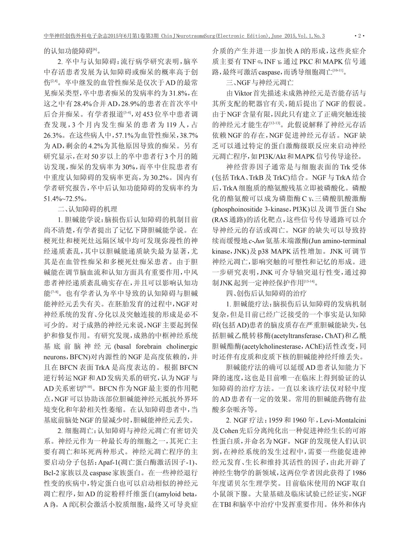 【蘇肽生】2015 腦損傷后認(rèn)知功能障礙及神經(jīng)生長因子的腦保護(hù)作用